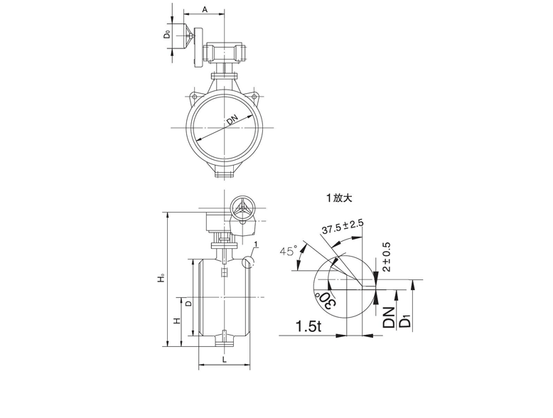 產(chǎn)品名稱及型號(hào):對(duì)焊式金屬密封蝶閥    D36(3/2)(H/W/W)